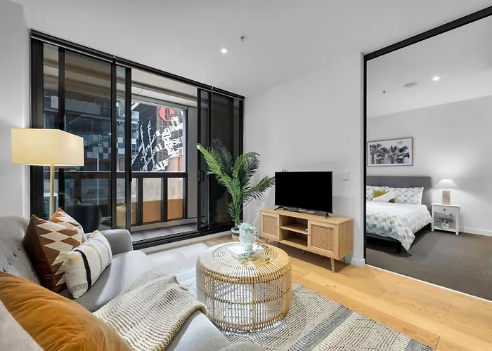 Апартаменты Stylish 2Bed 2 Bath Pool & Gym Walk To Southern Cross Melbourne – это отличный вариант для остановки в районе Мельбурн - центр города, на расстоянии 25 минут ходьбы от Центра Яна Поттера.